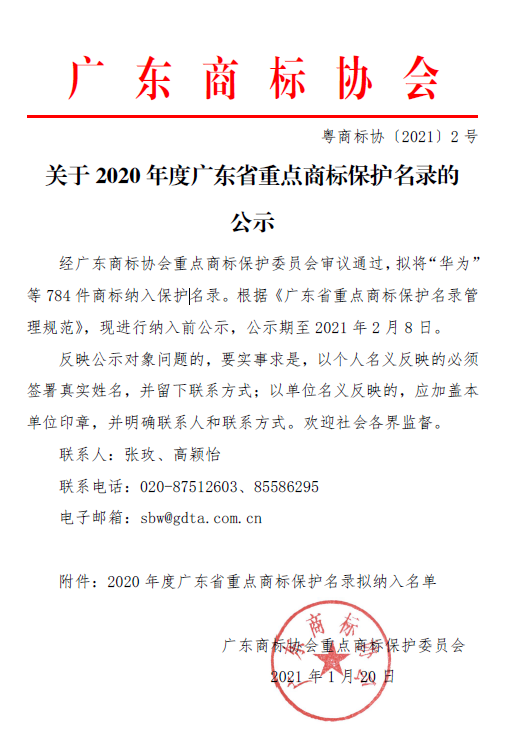 祝賀 TR 商標進入 2020年度廣東省重點商標保護名錄